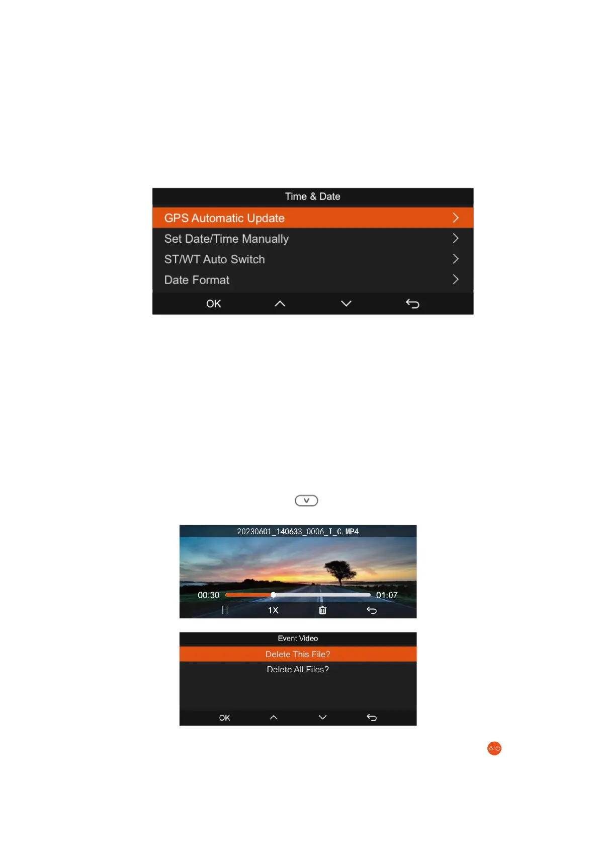 a. Fájlok megtekintése a kamerán: A fájlok közvetlen a műszerfali kamerán történő
