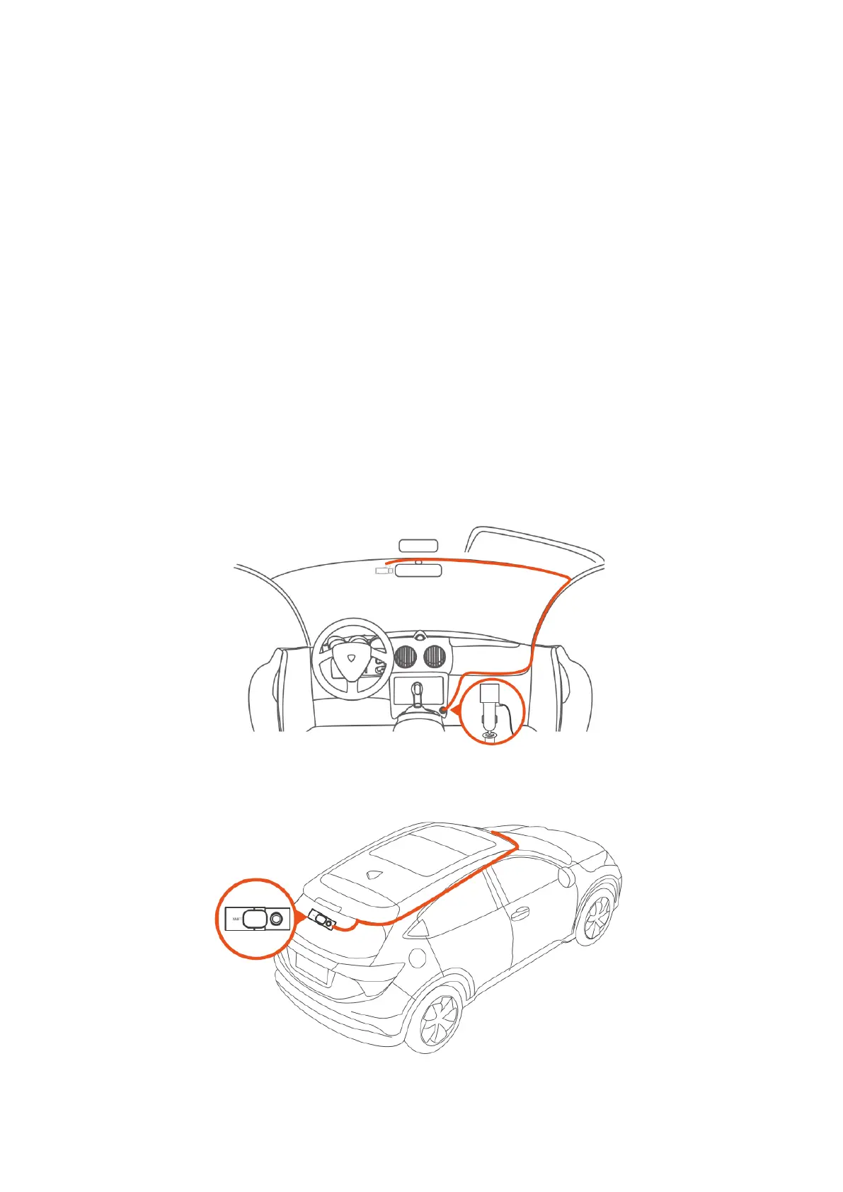 Rear camera cable: Organize the rear camera cable from the front windshield to the rear
