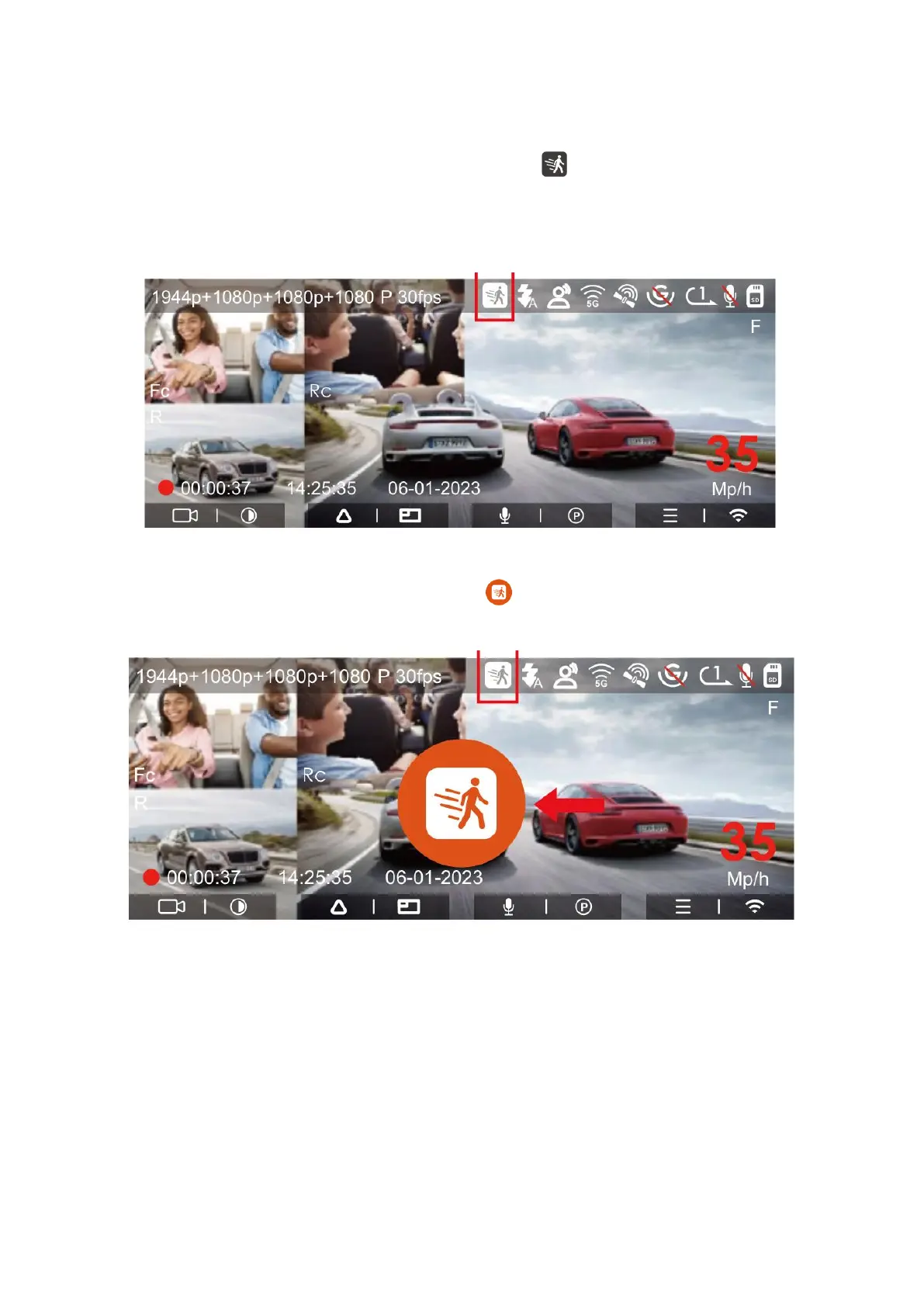 interface, signifying that the dash cam is currently operating in motion detection mode.