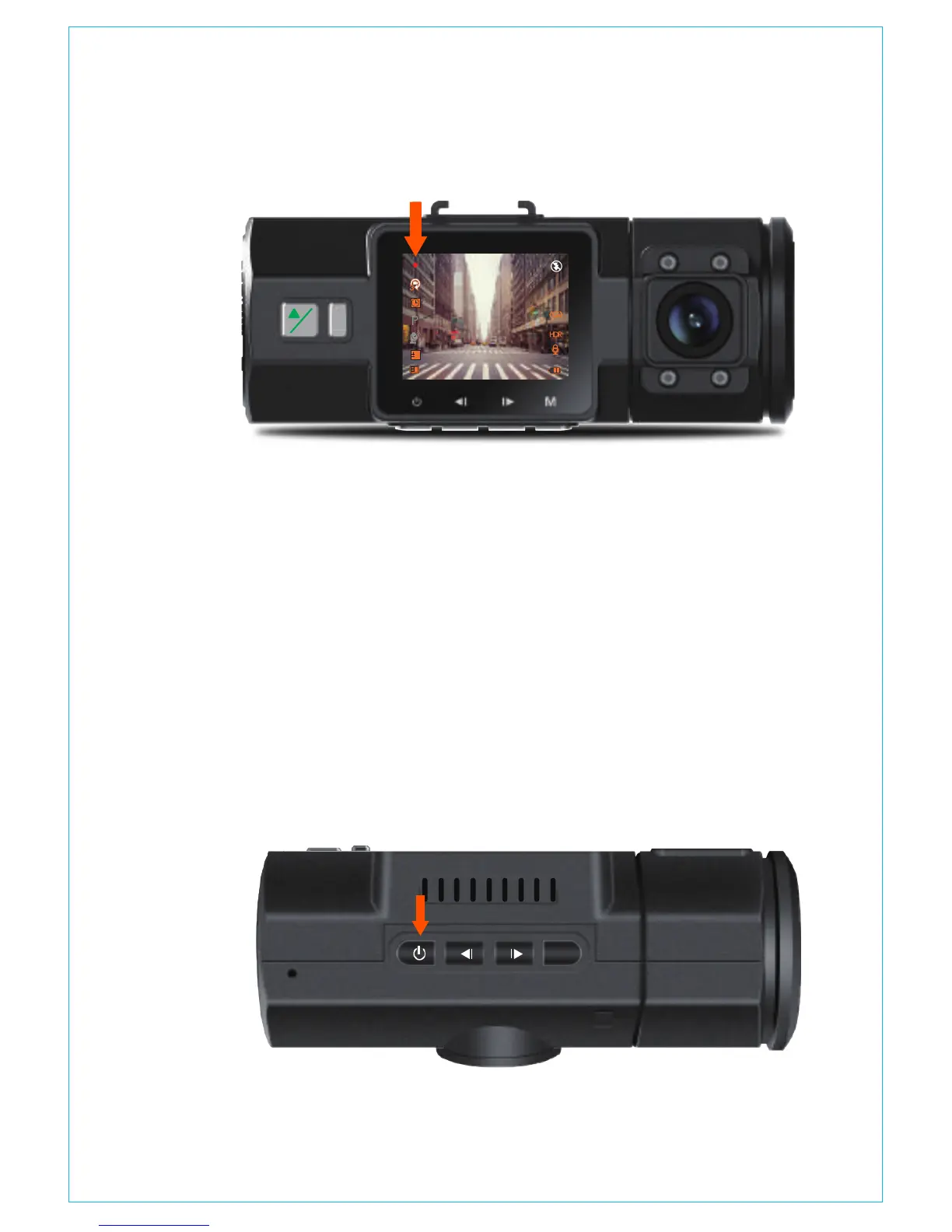 録画中、グリーンのLEDライトは点滅しています、左上角の赤い点も点