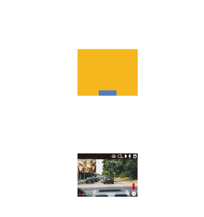 駐車モードに衝撃録画を選択すれば、画面の右下角に衝撃検知のマークが表