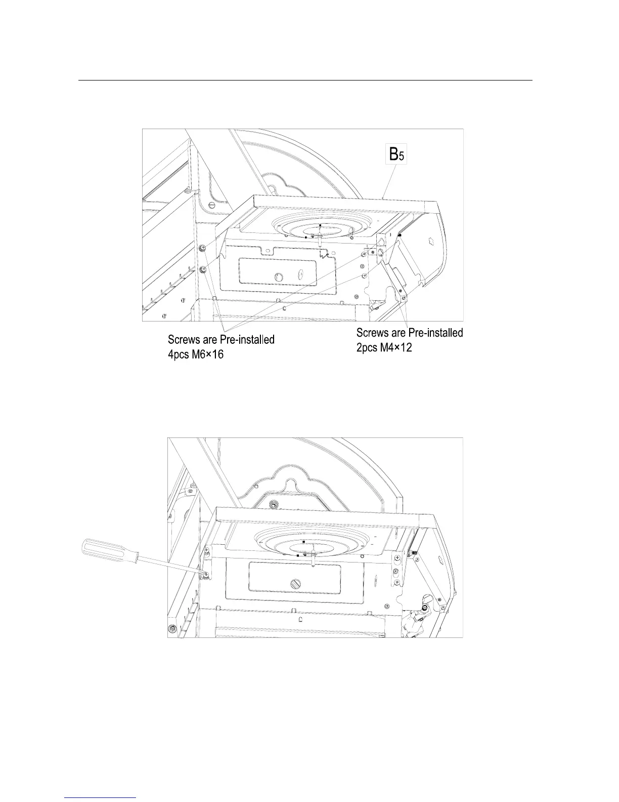 Tighten the pre-installed screws as the below picture shown.
