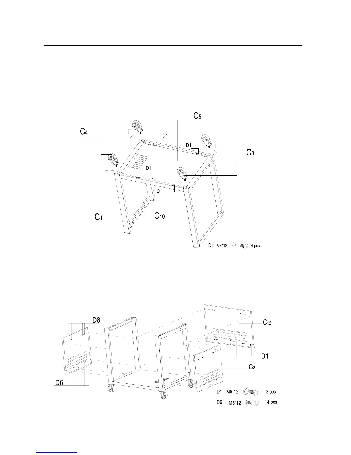 Step2: Attach the Side Panels (C2) and Rear Panel (C12) to the trolley frame using M5×12