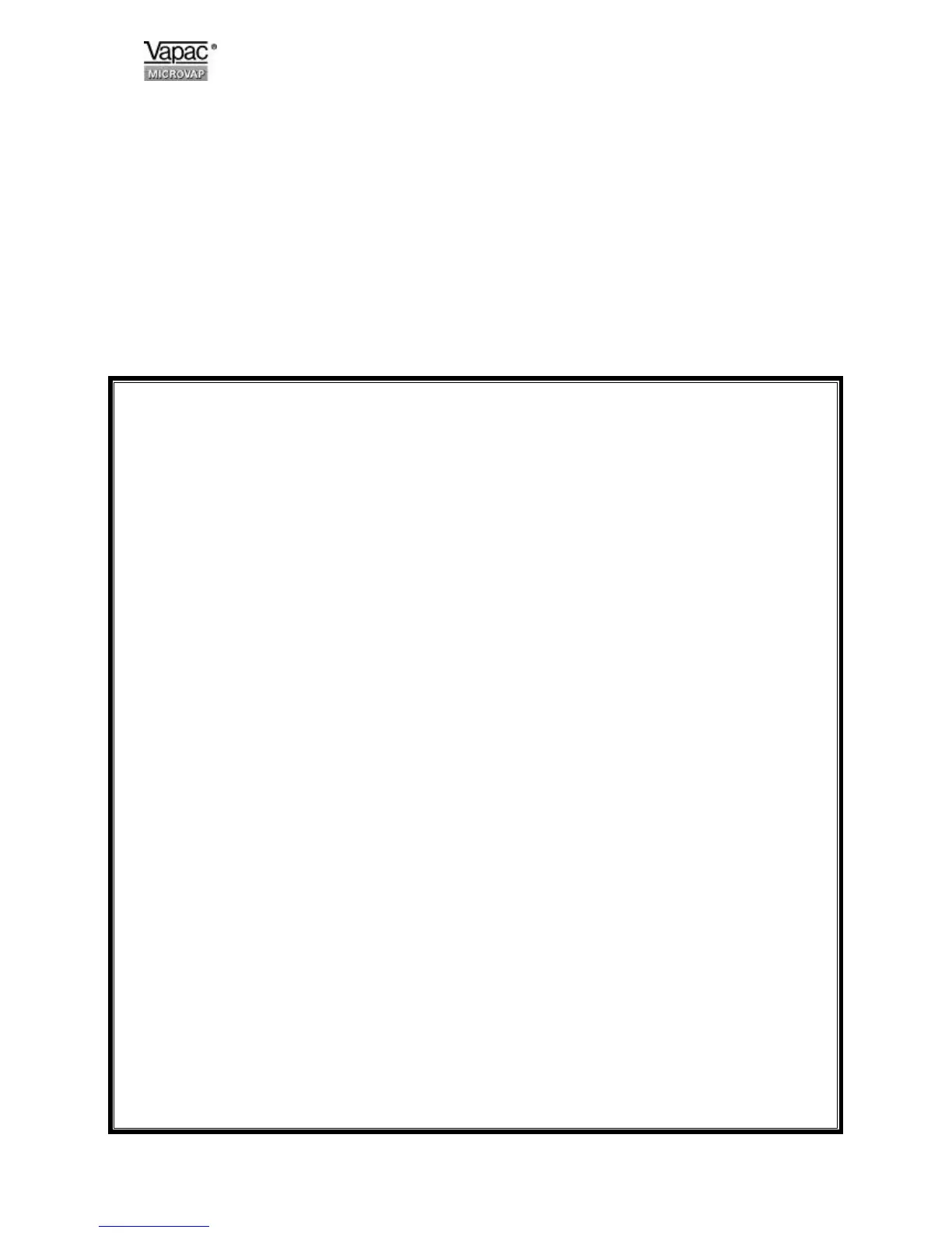 The Vapac transformer must not be used to power other equipment.