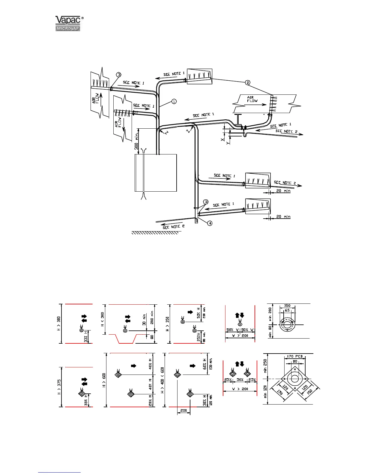 * Ø 54mm steam pipe : non-standard pipe required which has reverse slope and end outlet Ø15mm.