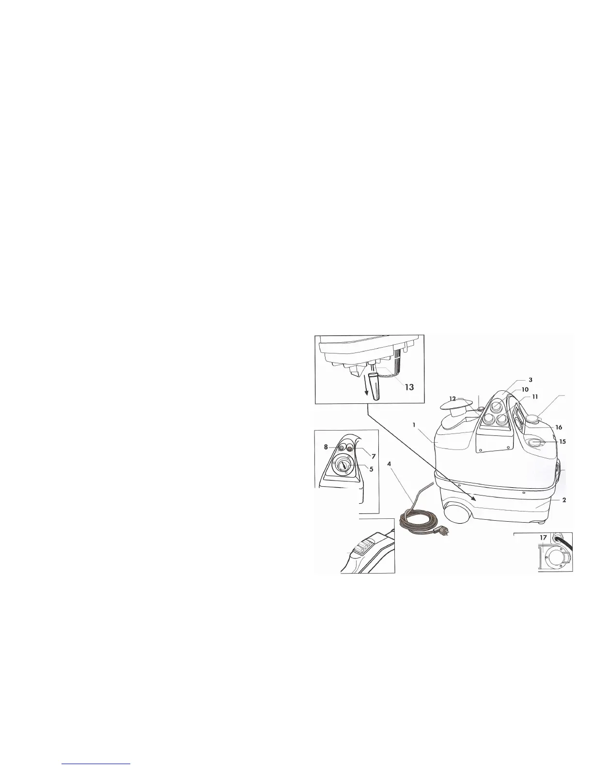 - Do not touch parts of the machine which may be very hot (e.g.: brushes and extensions)