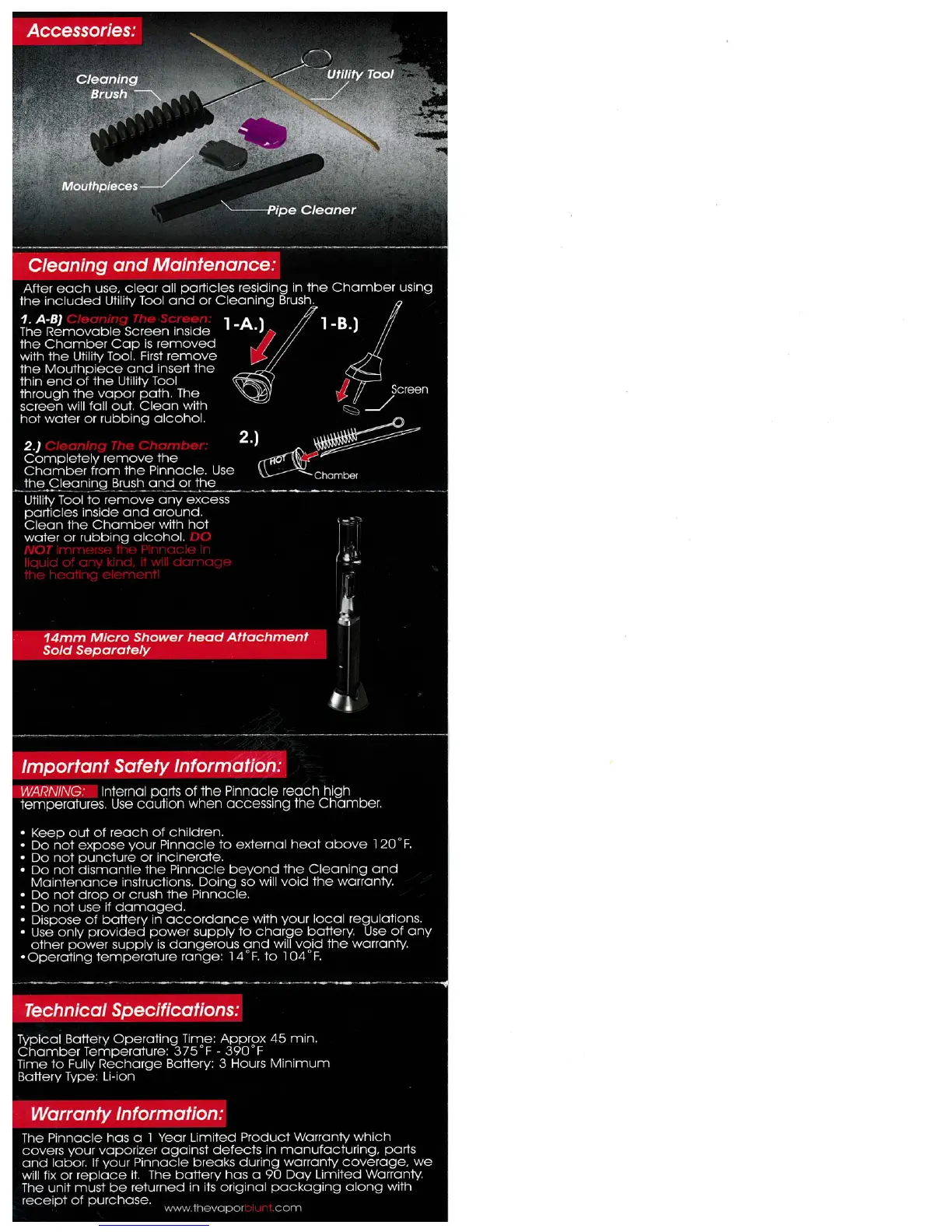 VaporBLUNT Pinnacle - Cleaning and Maintenance Guide; Screen Cleaning; Chamber Cleaning; Important Safety Precautions