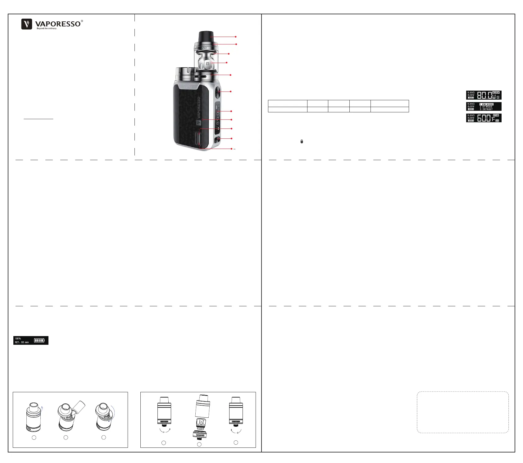 Vergrendel/Ontgrendel weerstand: In TC-Ni / TC-Ti / TC-SS / TCR (M1, M2) modus, druk tegelijk op de "-" en modusknop gedurende 2seconden zal de weerstand vergren-