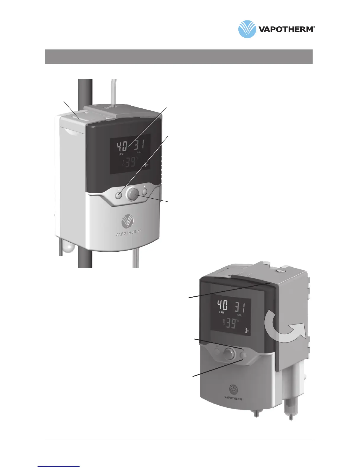 • Shows set values for oxygen %, flow