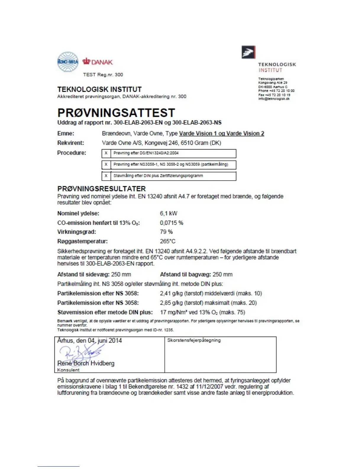 Varde Vision - Test Certificate (Teknologisk Institut)