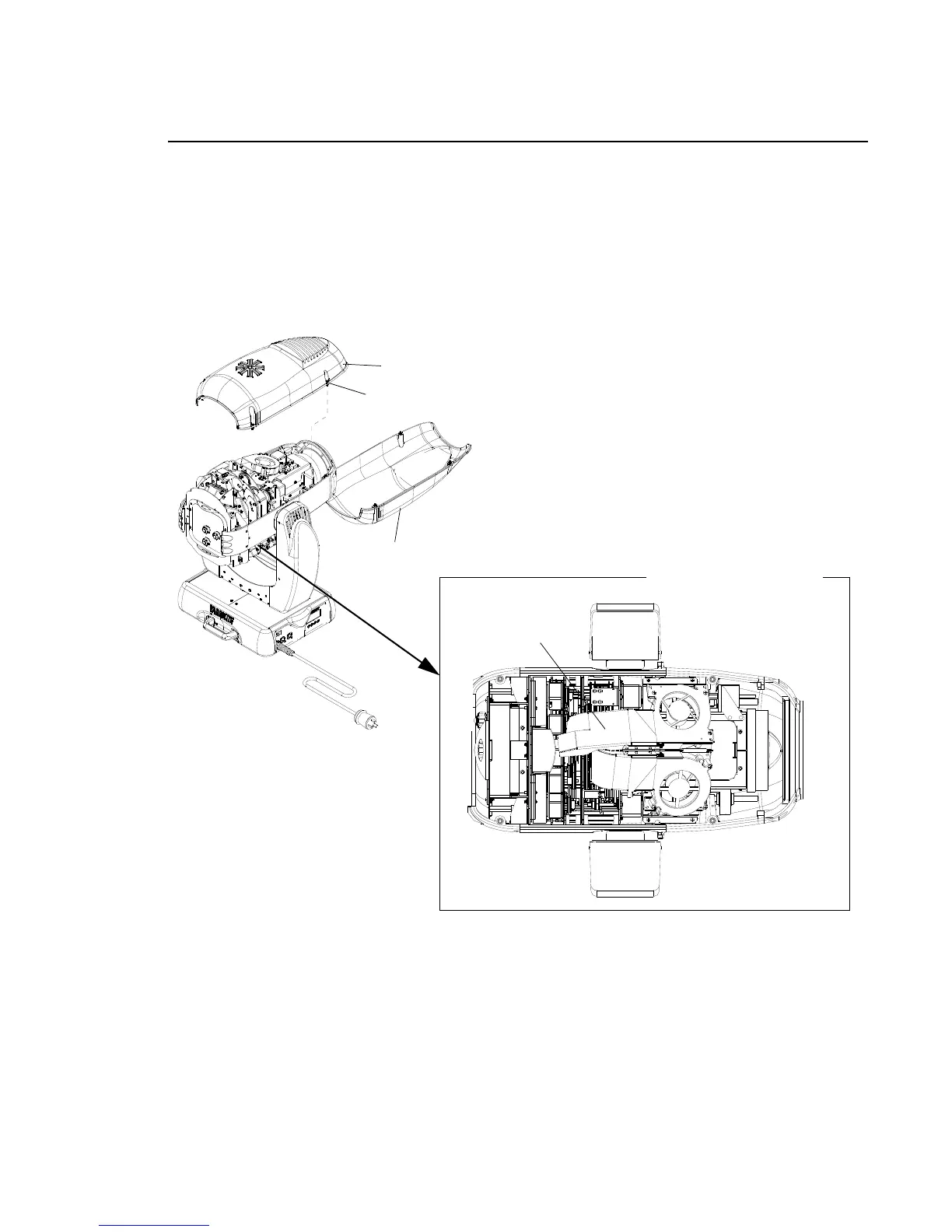The lower fan duct assembly is equipped with a lamp power cut-off switch. If the hinged duct is raised
