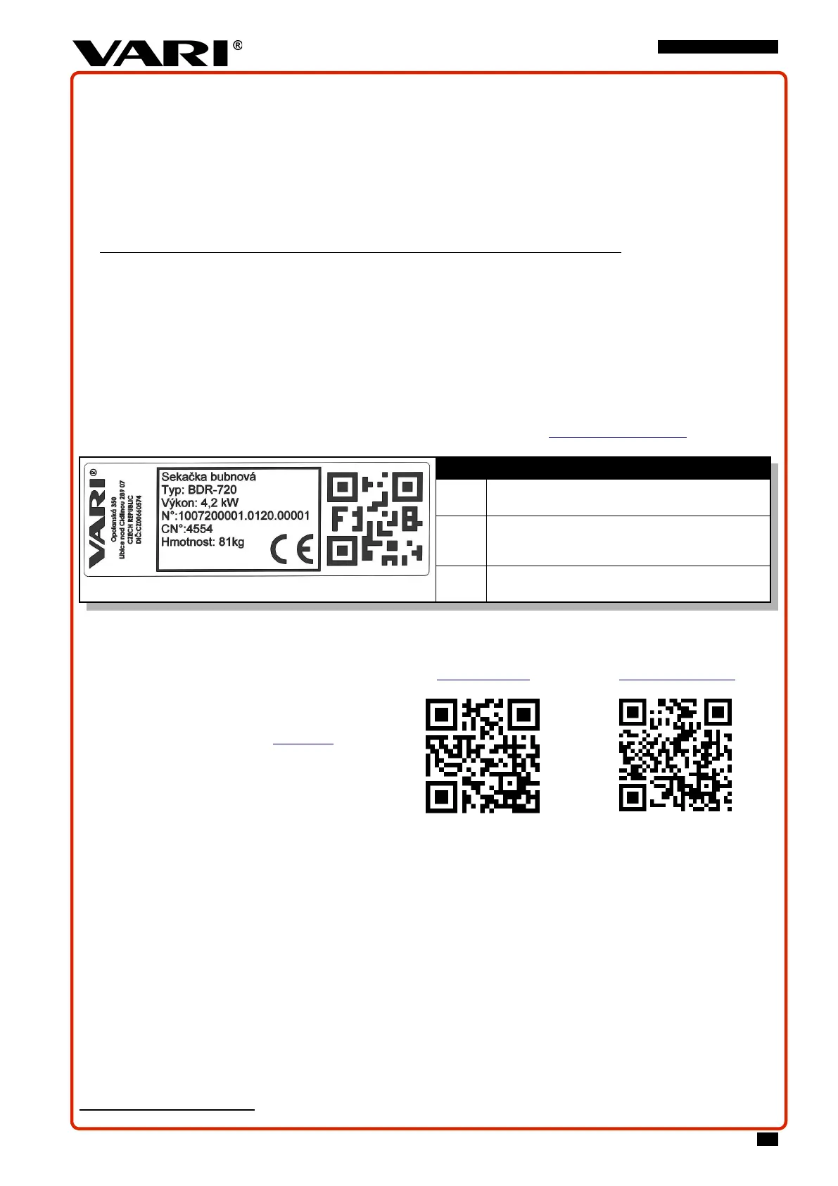 (C№) uvedené na výrobnom štítku stroja, alebo na škatuli, alebo v záručnom liste. Len s týmito informáciami je možné u Vášho predajcu
