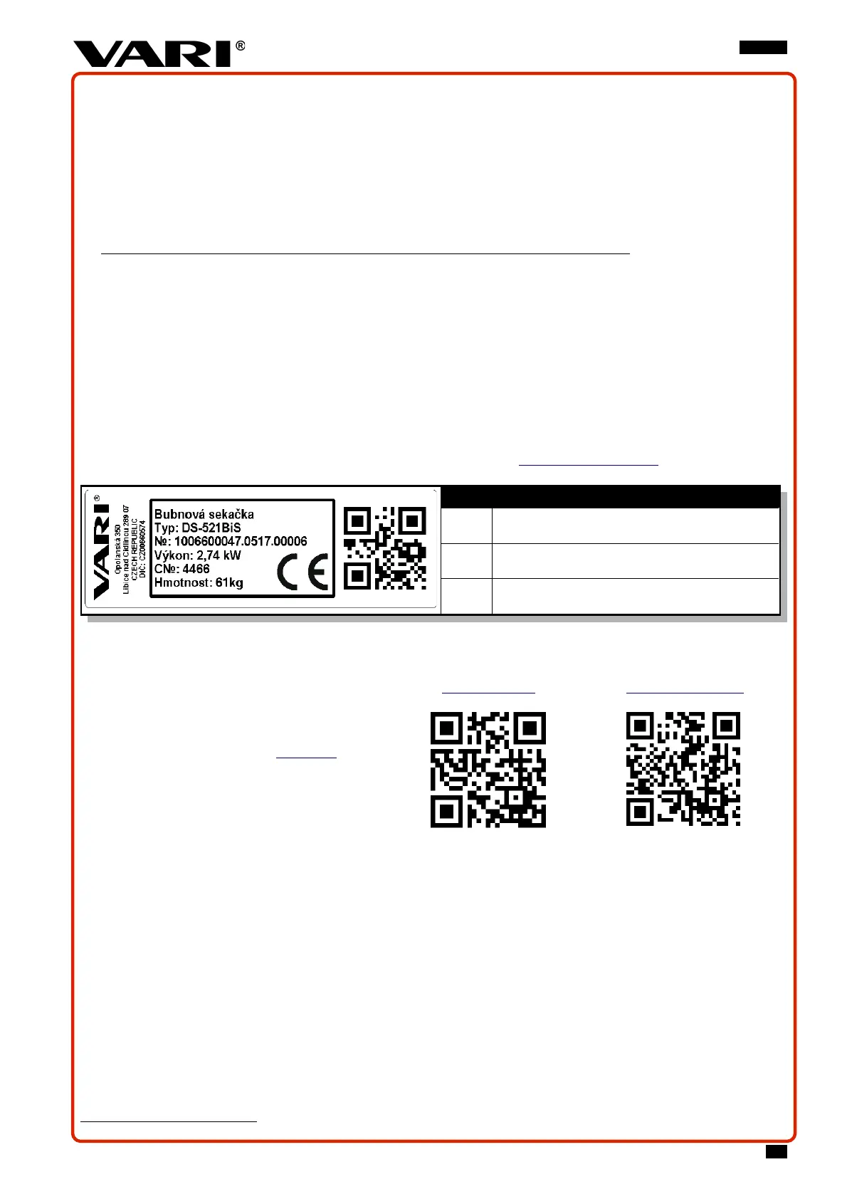 uvedené na výrobním štítku stroje, nebo na krabici, nebo v záručním listě. Pouze s těmito informacemi lze u Vašeho prodejce přesně