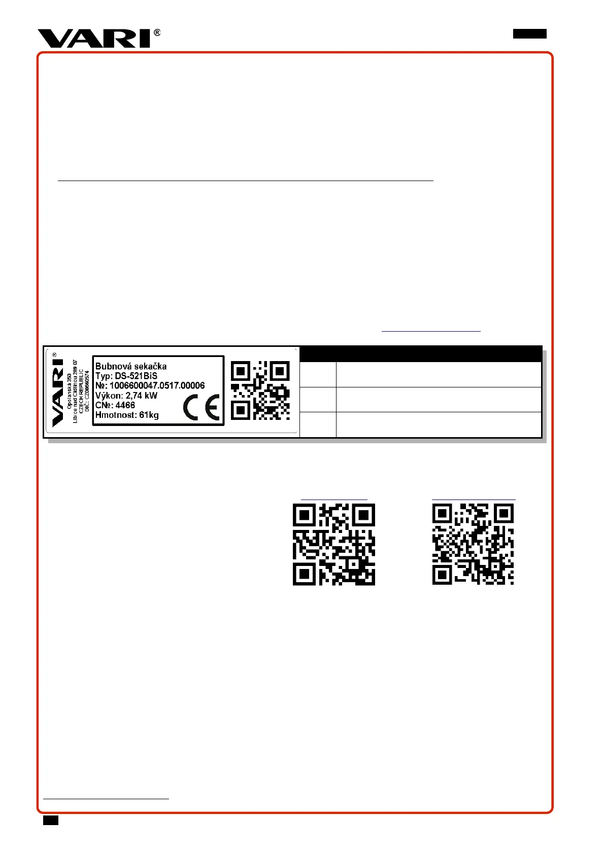 (2) uvedené na výrobnom štítku stroja alebo na krabici alebo v záručnom liste. Len s týmito informáciami možno presne dohľadať
