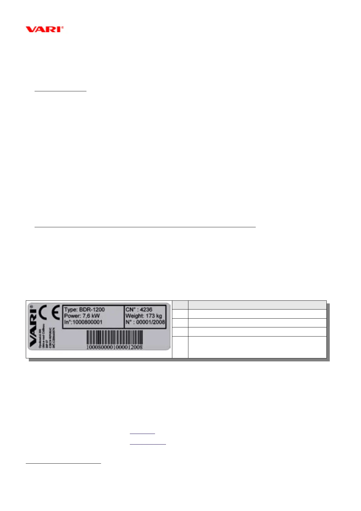 In° Unique manufacturer identification number. (1 0008 00 001)