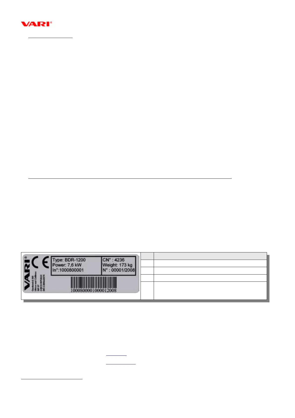 Type Typbezeichnung der Maschine. (BDR-1200)