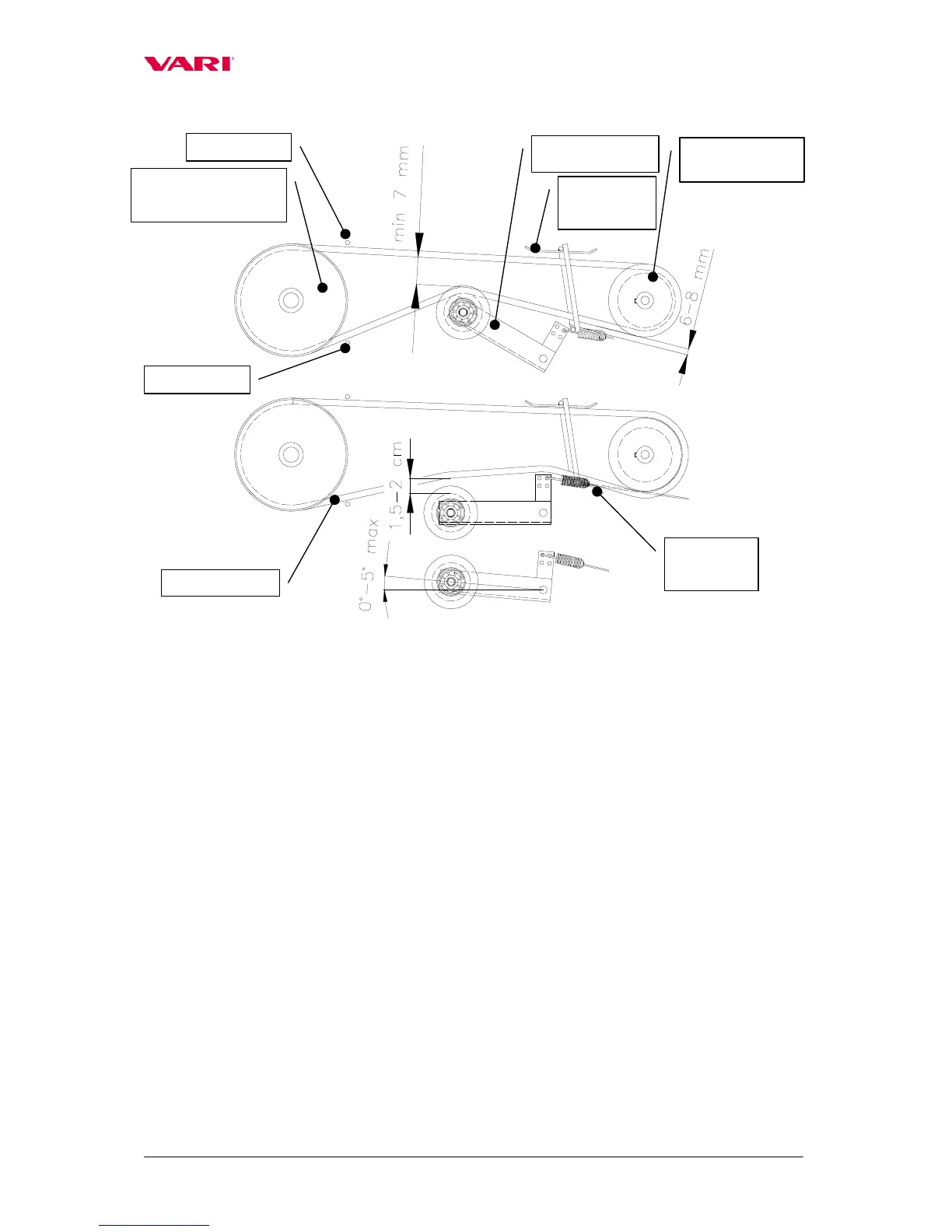 drive clutch lever on the gearbox and on the arm of the tightening pulley – see Figs. 7 and 8)