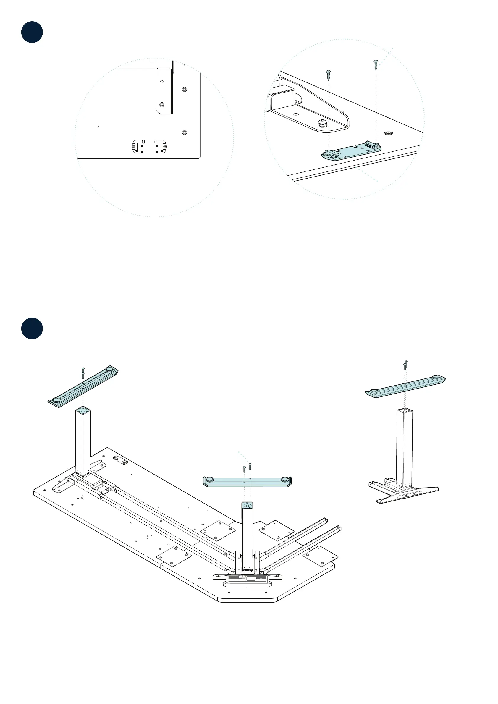 Alignez les PIEDS avec les trous de vis du pied. Ensuite, xez chaque pied en u lisant LA CLÉ ALLEN DE 6 MM fournie pour visser (2) .