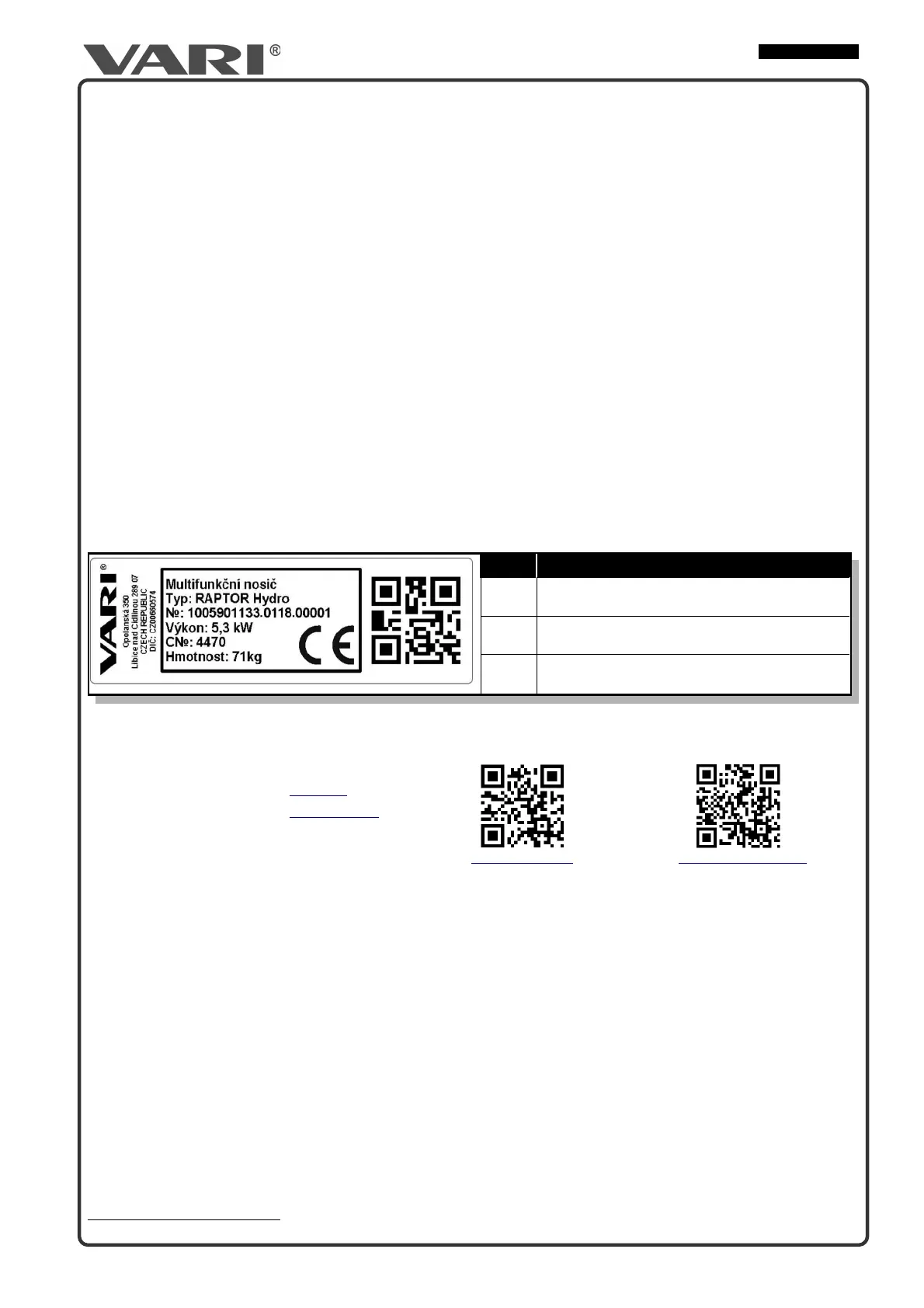 uvedené na výrobním štítku stroje nebo na krabici či v záručním listě. Pouze s těmito informacemi lze přesně dohledat označení příslušného