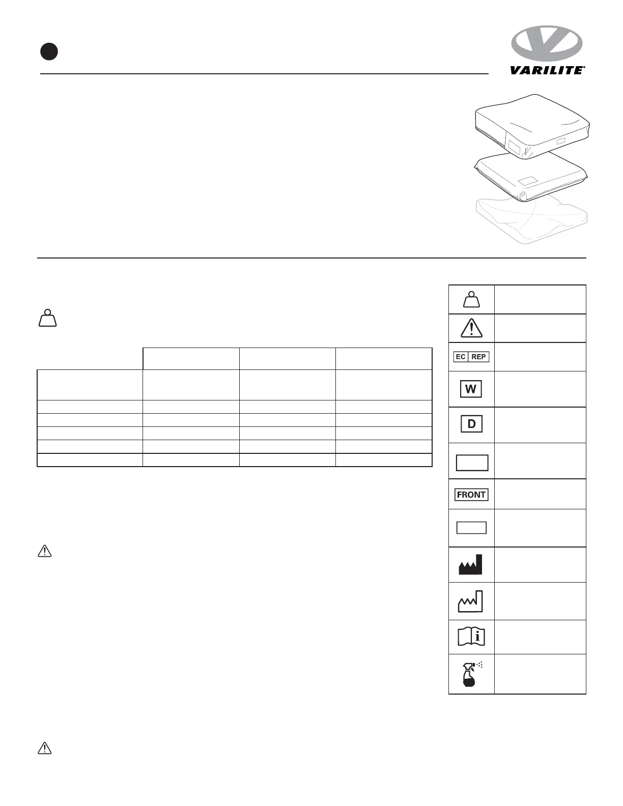 Tenzij anders vermeld, is het maximumgewicht voor gebruikers van VARILITE-rolstoelkussens 294 kg. De