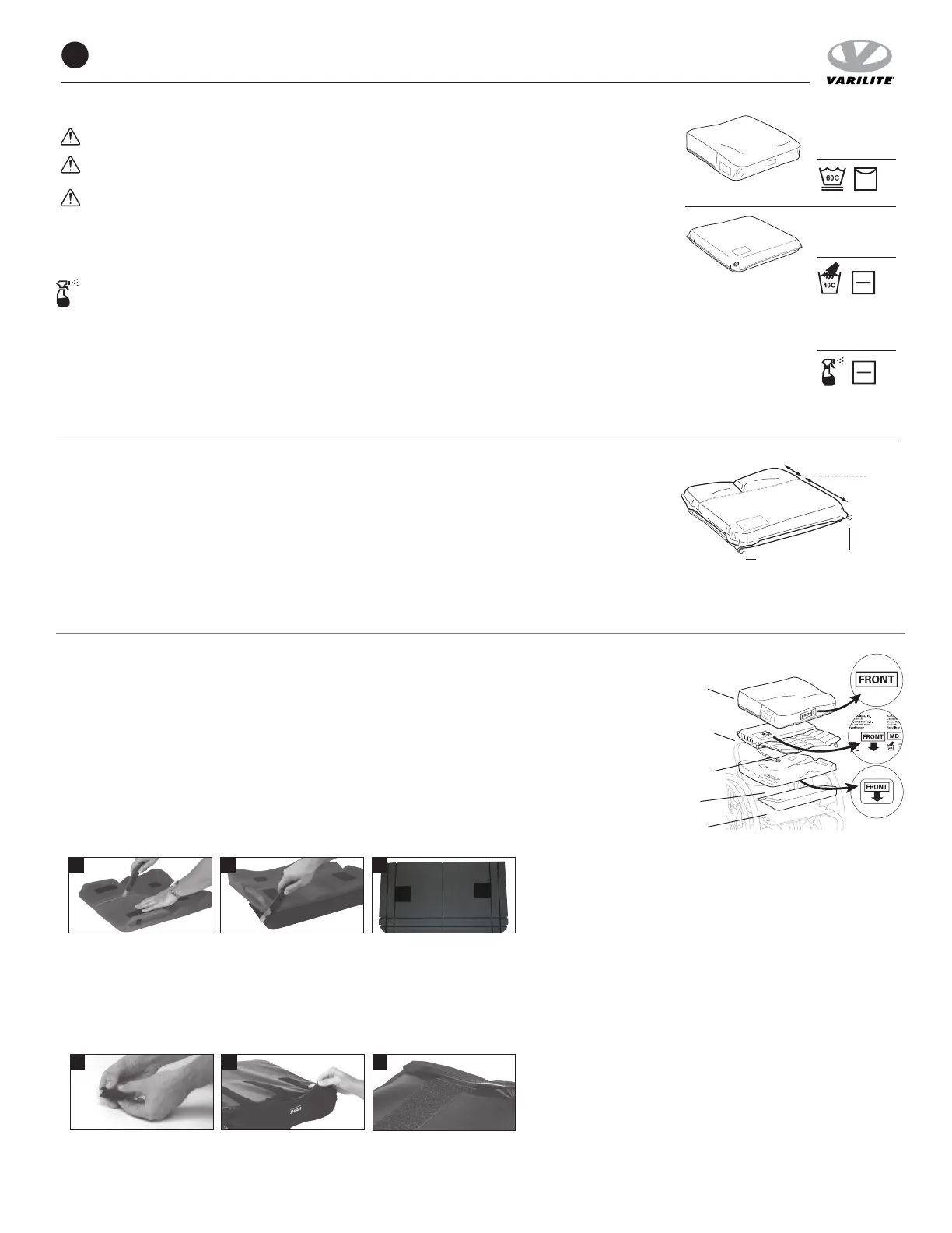Beachten Sie die Wäschesymbole, die in dieser Gebrauchsanleitung und auf dem Etikett Ihres Sitzkissens abgebildet