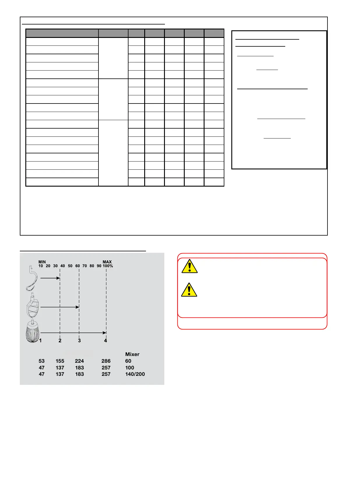 (table, maximum capacity for mixer