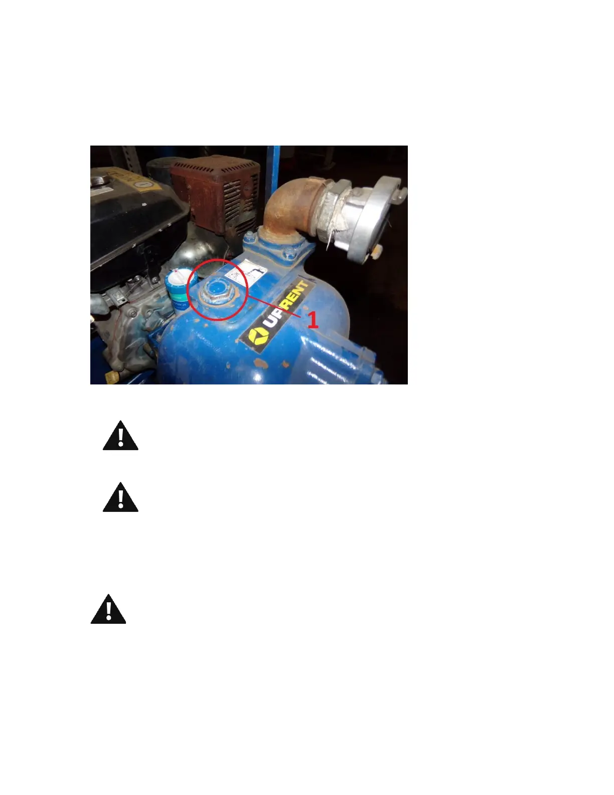 Fill the pump casing completely with the liquid to be pumped through the opening on the top of the