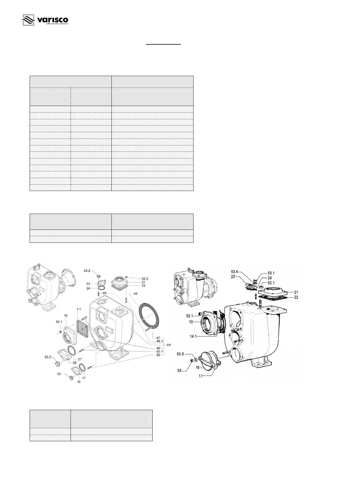 Couples de serrage pour la bouche de refoulement et d’aspiration de la pompe (21, 10).