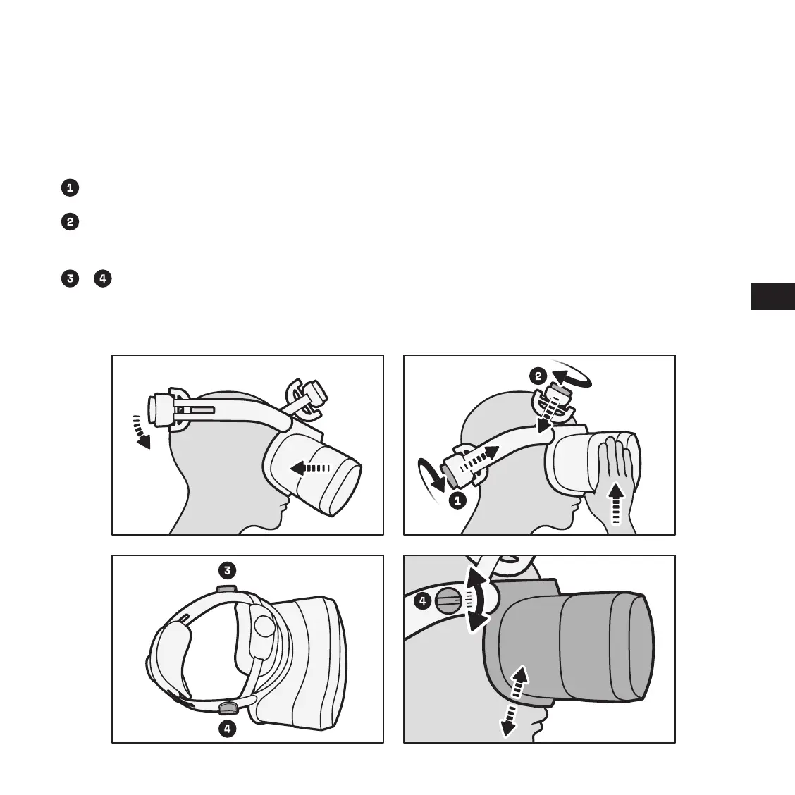 e : usa le manopole laterali per regolare l'aderenza del visore al volto.