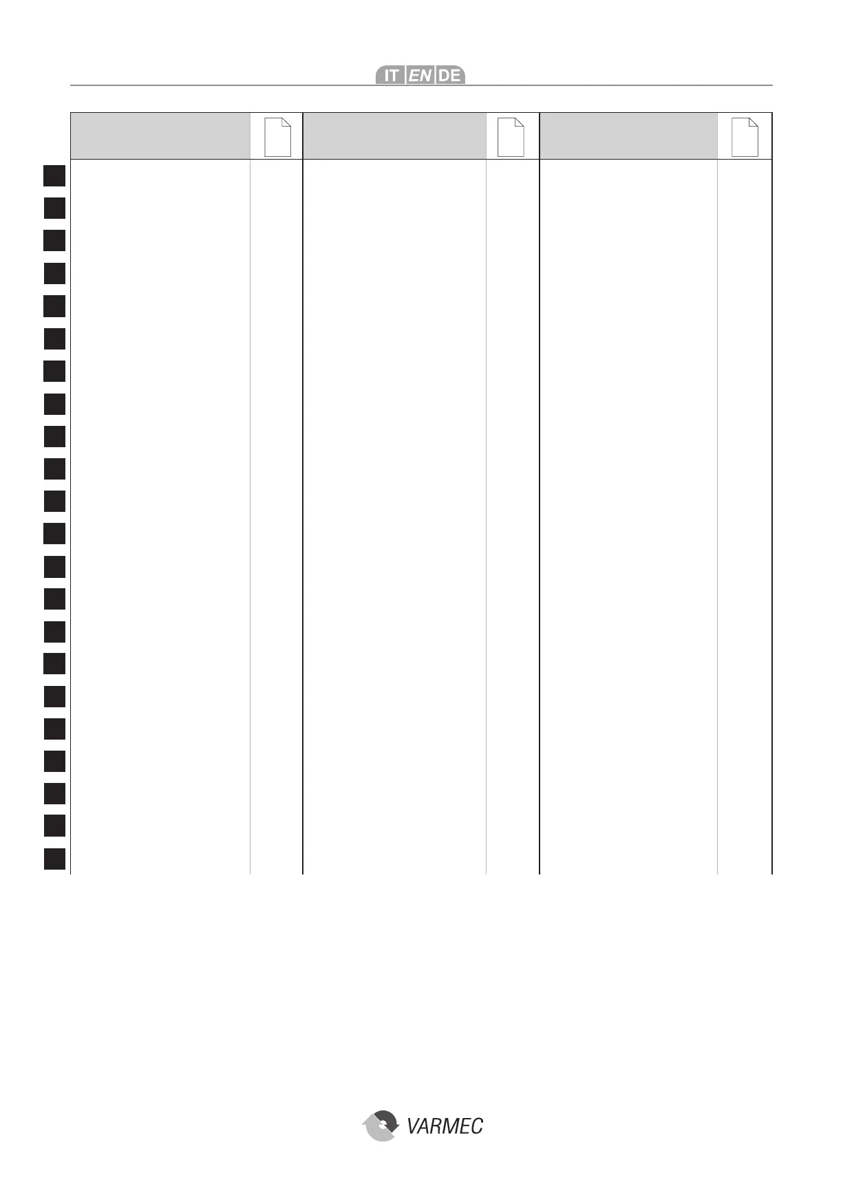 VARMEC RCV 552 - Table of Contents