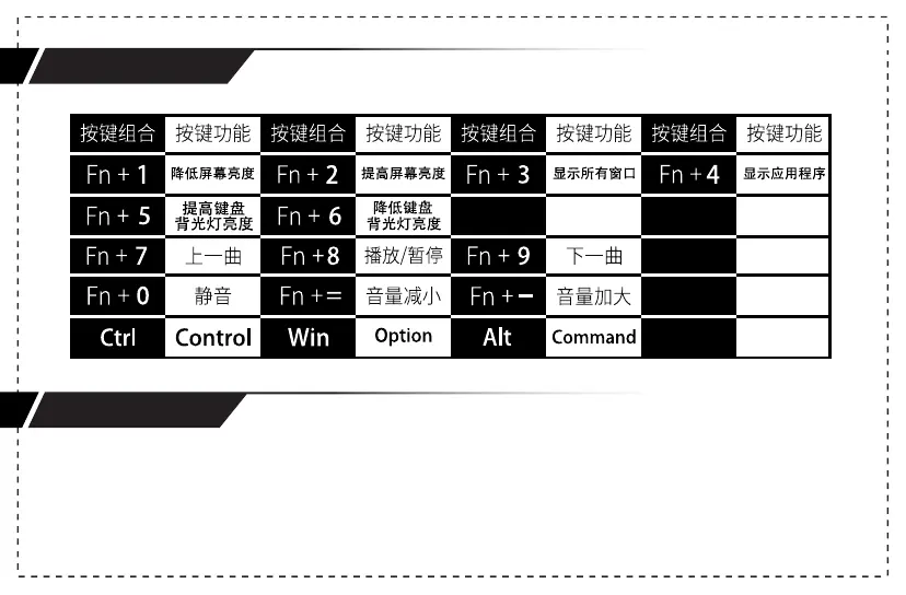 ·Fn+ Win键可屏蔽Win键,Win 键被屏蔽时亮白灯。