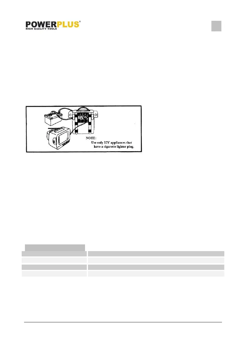 NOTE: Do not attempt to jump start your car when you have 12 volt DC