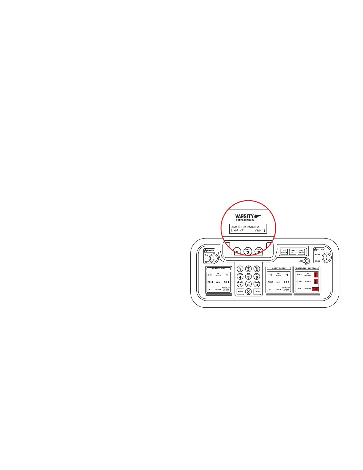 The LCD screen will display Use Scoreboard 1 of X, where X is