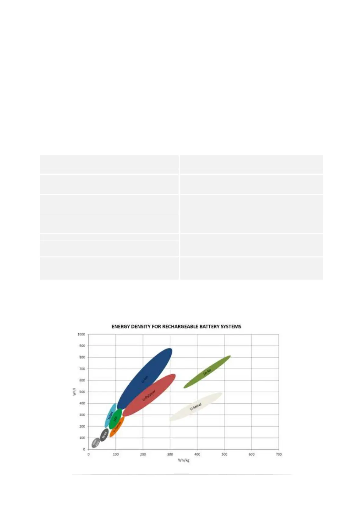 Comparison of different rechargeable battery systems regarding their energy densities