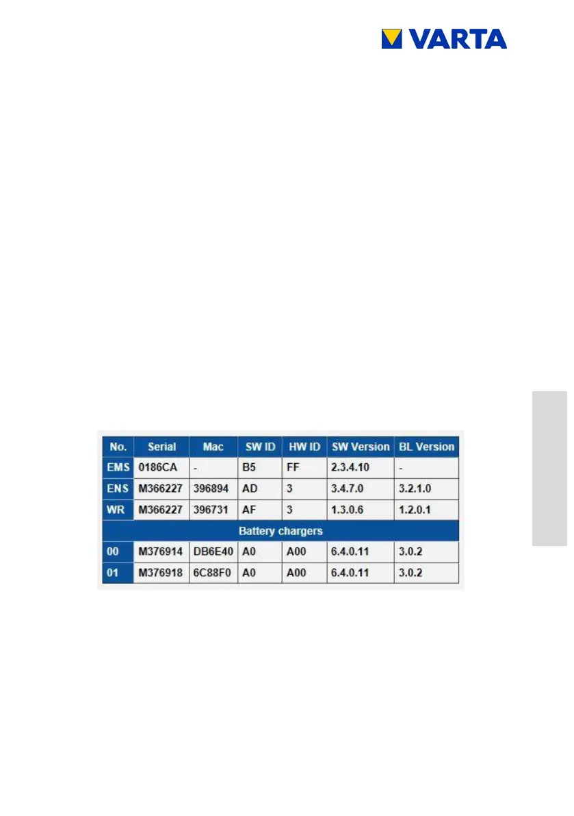 The serial numbers of the installed battery modules are displayed