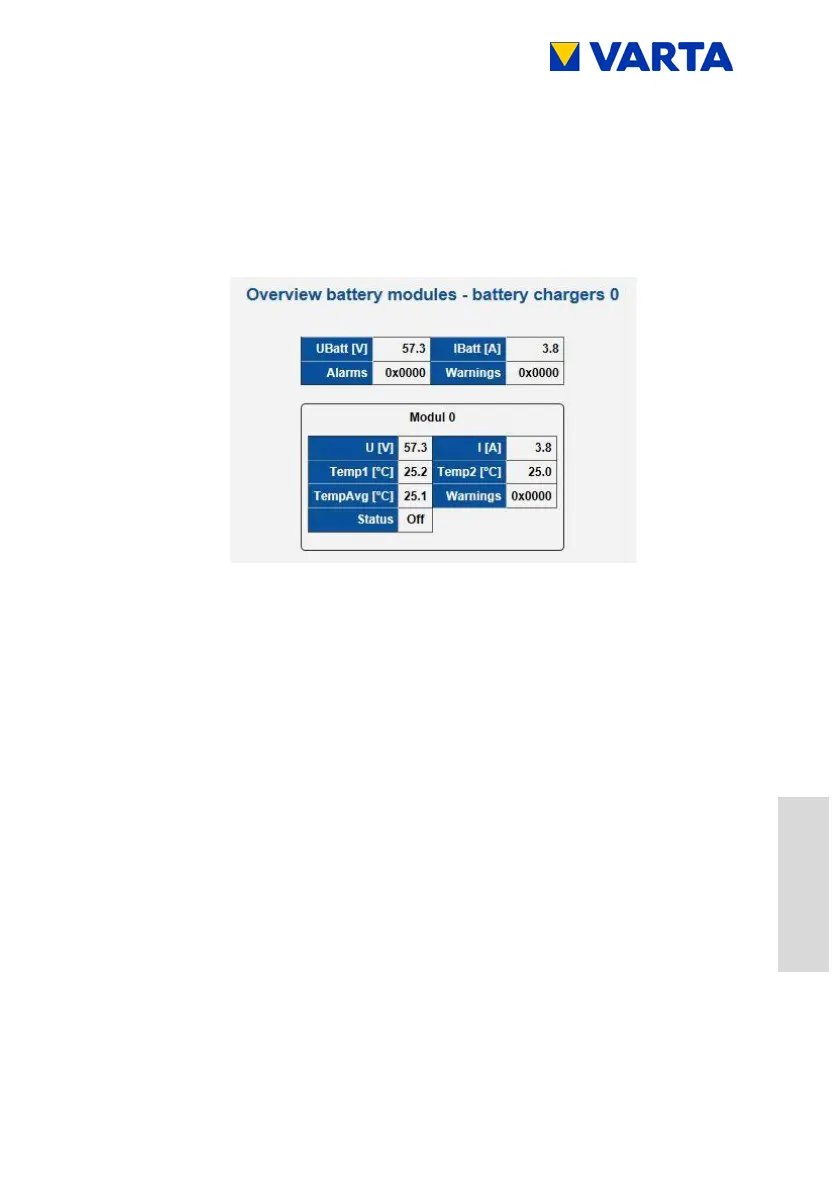 The warnings and errors of the battery modules are displayed