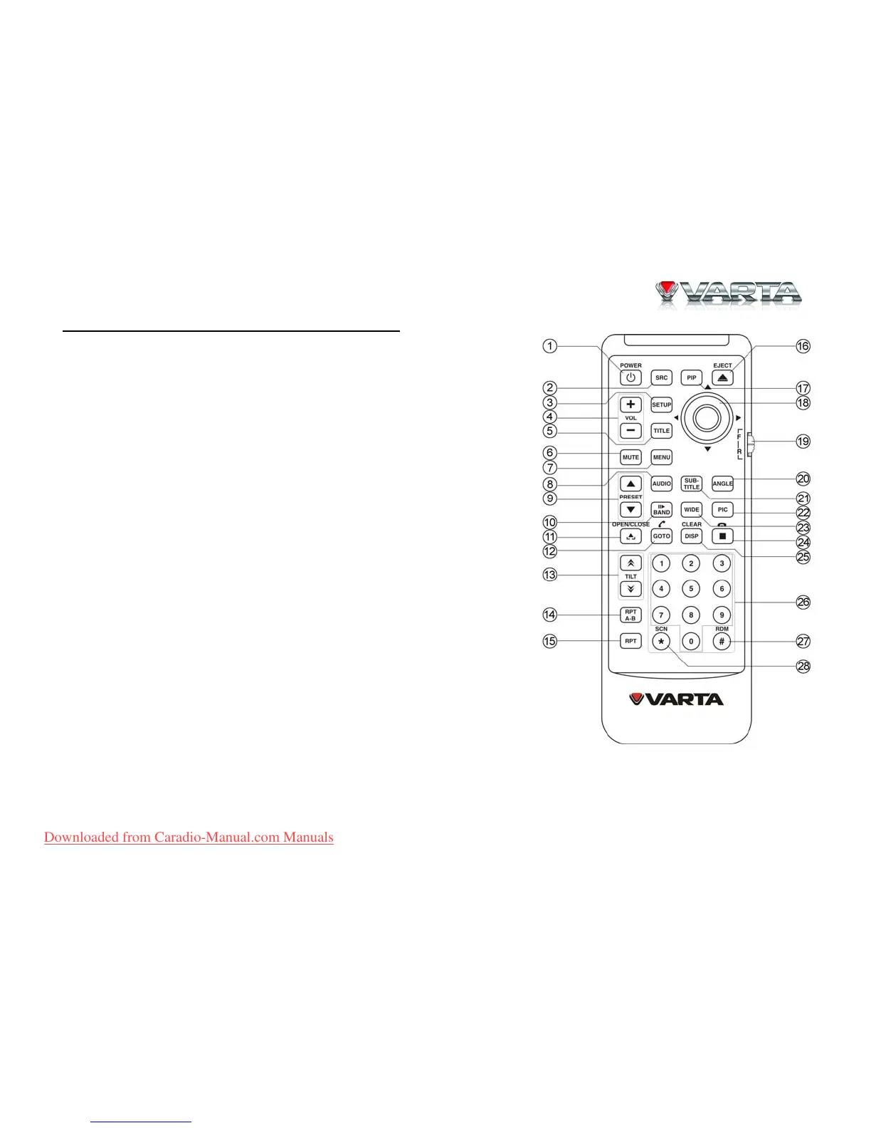 Varta V-AVM650D - Пульт Дистанционного Управления (ПДУ)