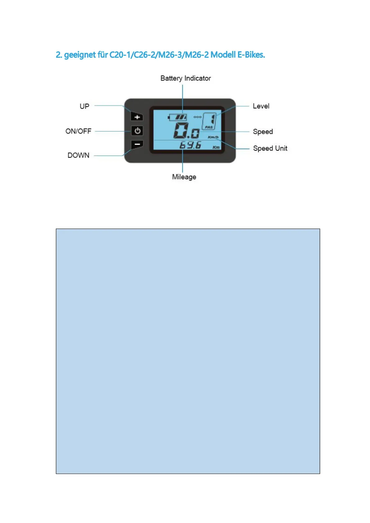 Geschwindigkeit und Kilometerstand können mit der UP/DOWN-Taste umgerechnet