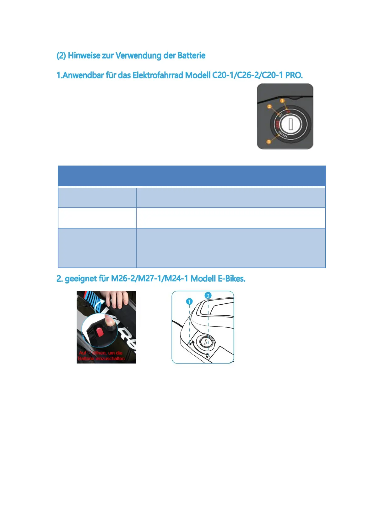 Schlüsselstellung 1 ist der Akku "verriegelt", der Akku ist mit dem Rahmen verriegelt