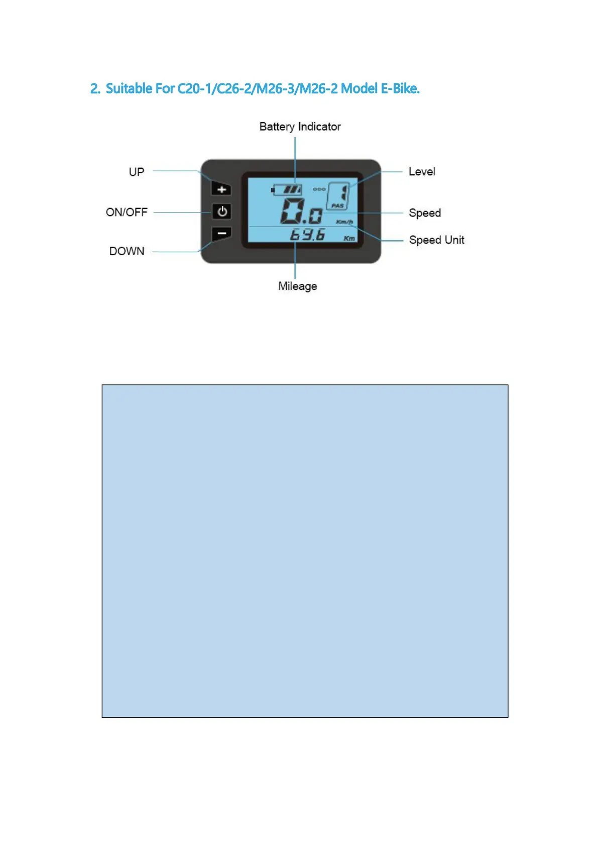 default. Short press "ON/OFF" button can switch between total mileage (km),