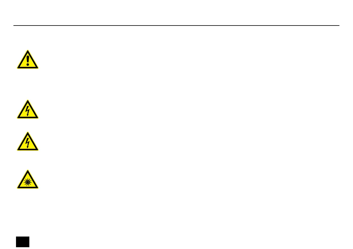 The device generates highly intense light radiation. Looking directly into the light source can damage the eyes. Never look directly