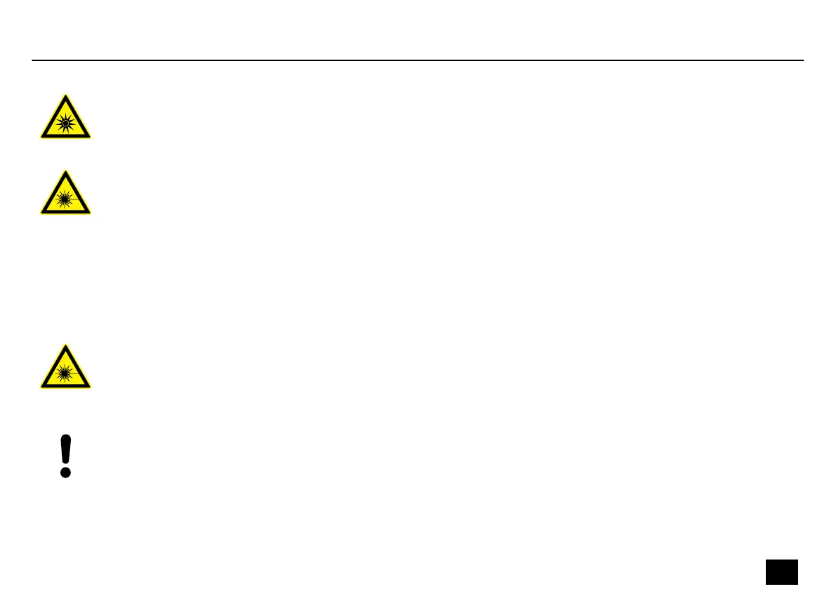 persons are not at risk while it is in operation. Do not look into the laser beam for any longer period of time. Do not use optical