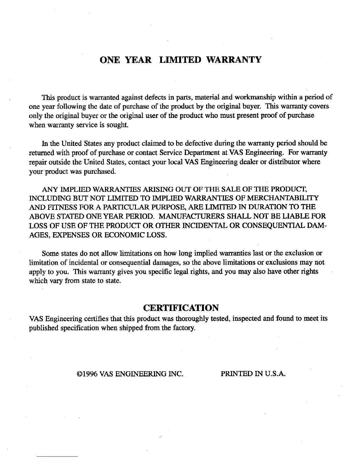 VAS Engineering Doric 400A - Page 3