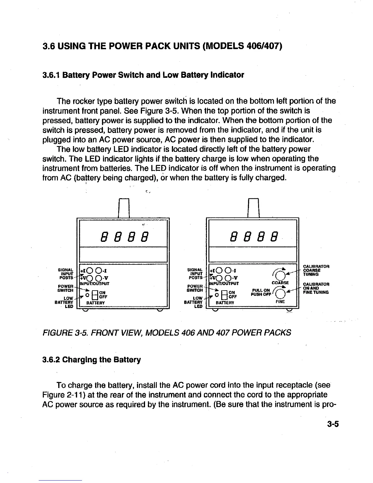 VAS Engineering Doric 400A - Using the Power Pack Units; Battery Power Switch and Low Battery Indicator; Charging the Battery