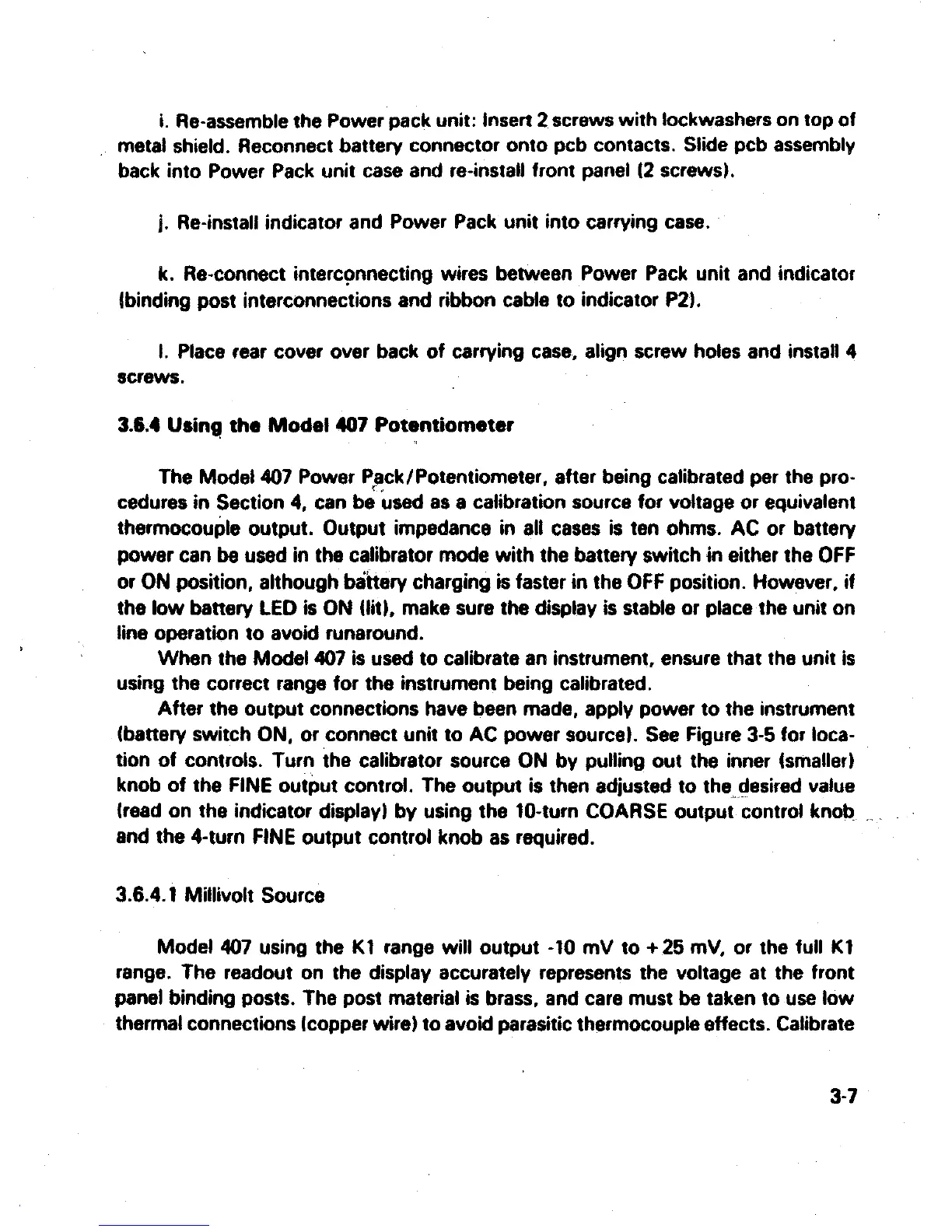 VAS Engineering Doric 400A - Using the Model 407 Potentiometer; Millivolt Source