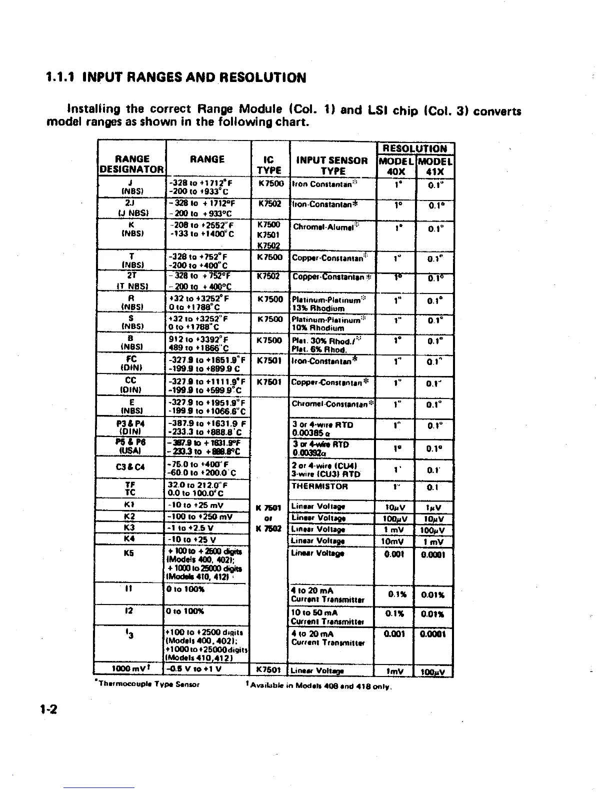 VAS Engineering Doric 400A - Input Ranges and Resolution