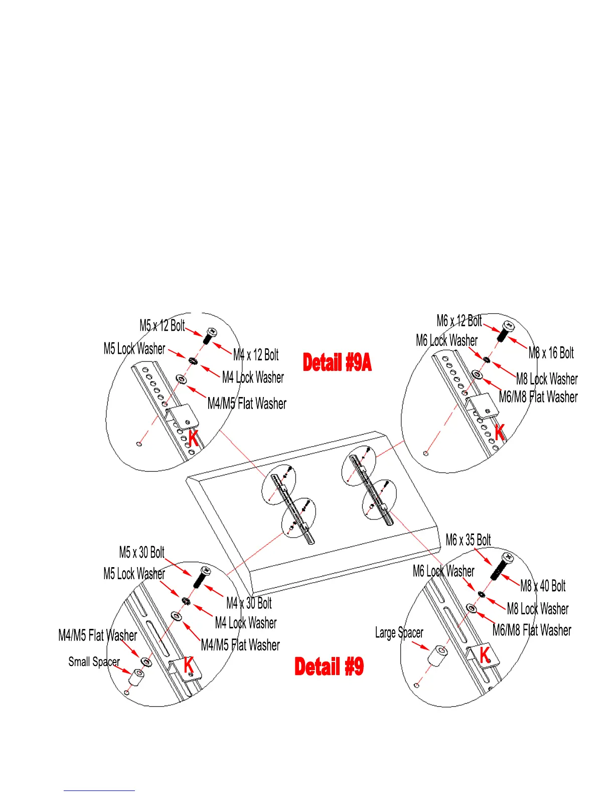 the slot of Monitor Bracket (K), a second Flat Washer (M4/M5 Diameter Bolts only),