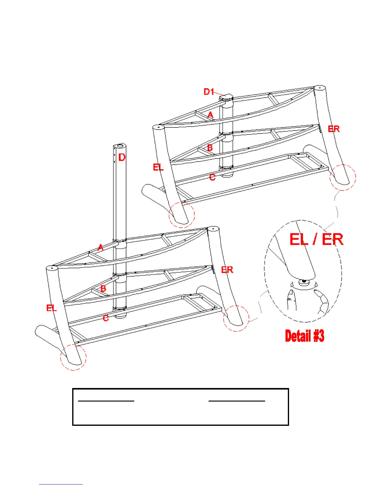 Levelers attached on the bottom of Side Legs (EL & ER) and adjust the height of the