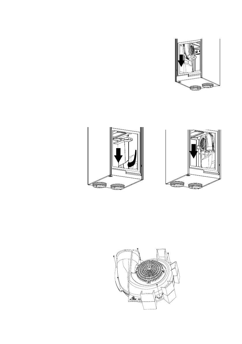 - Haal het slakkenhuis inclusief ventilator uit de unit.