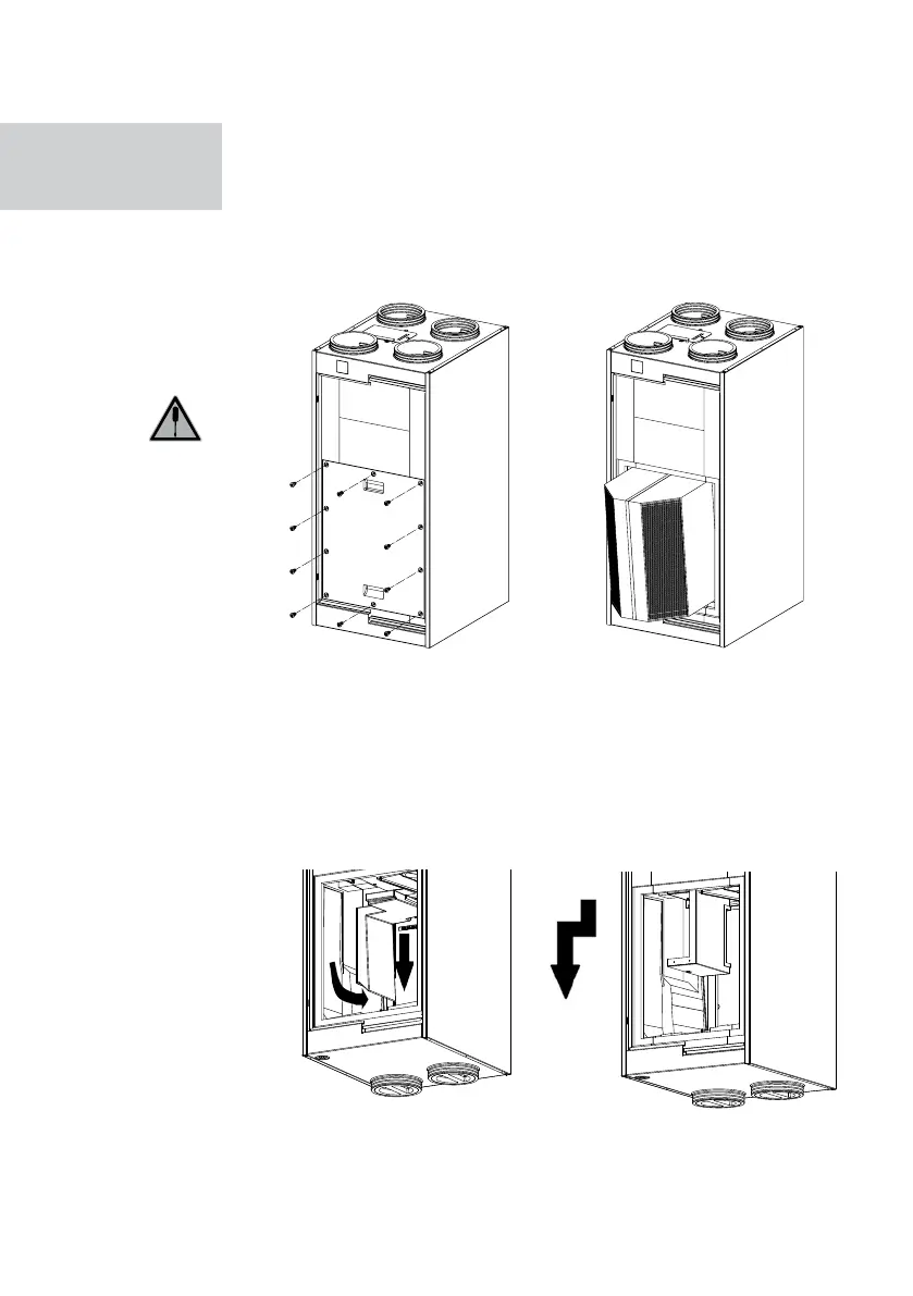 • Retirez les ventilateurs d’amenée et d’extraction de l’appareil.
